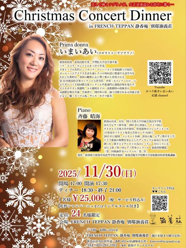 #別邸涵養荘 #いまいあい #斎藤晴海 #コンサートディナー#いまいあいコンサートディナー #クリスマス #クリスマスコンサート#クリスマスコンサートディナー