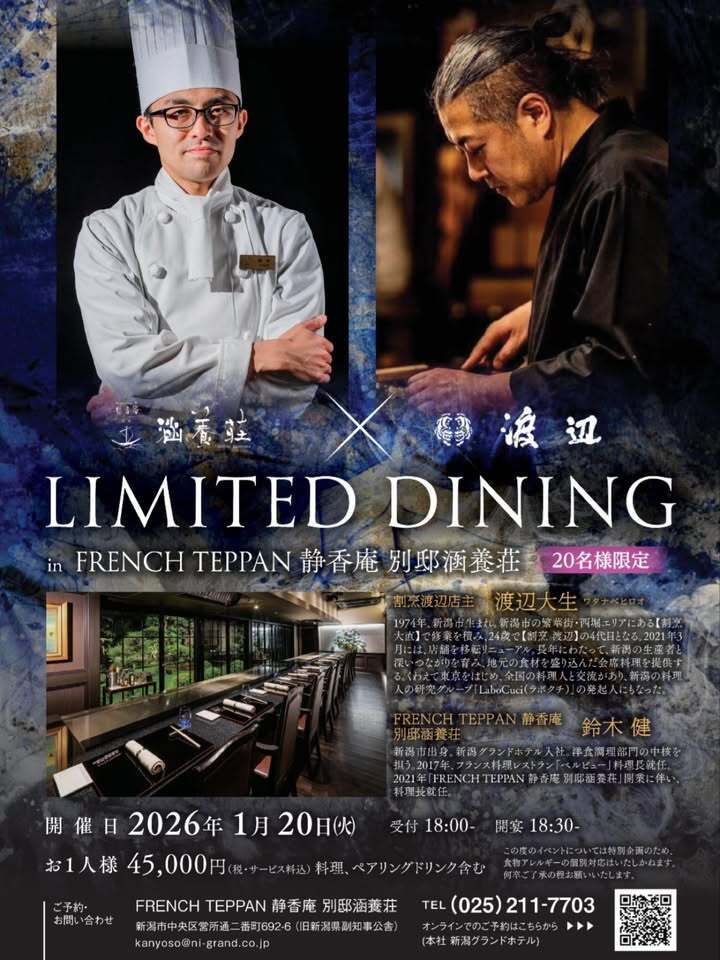 #割烹渡辺 #渡辺大生 #別邸涵養荘 #鈴木健 #LIMITEDDINING #リミテッドダイニング #新潟グランドホテル #ペアリング