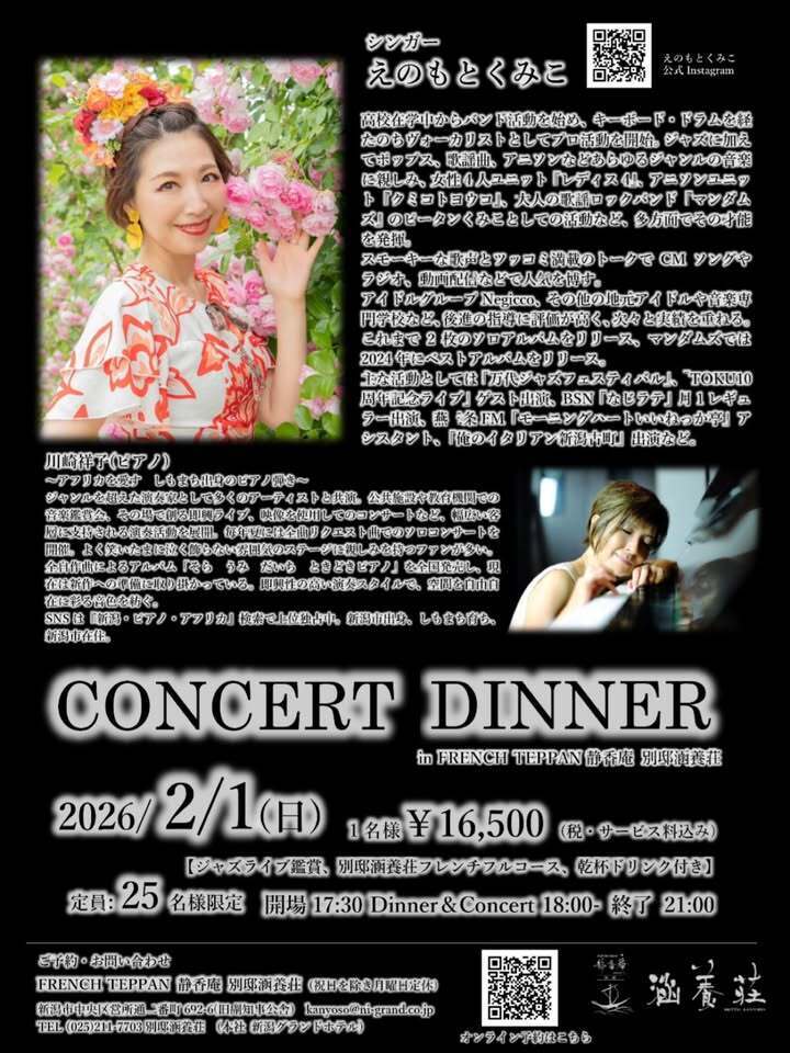 #えのもとくみこ #別邸涵養荘 #ライブ #コンサートディナー #ライブディナー ディナー フレンチ 川崎祥子 ピアニスト