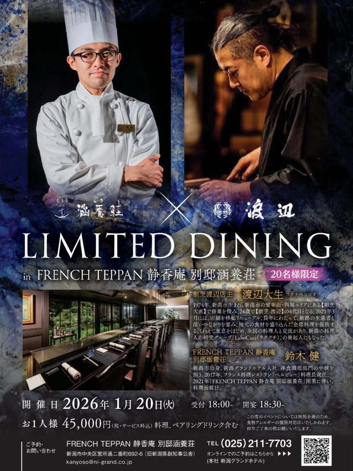 #割烹渡辺 #渡辺大生 #別邸涵養荘 #鈴木健 #LIMITEDDINING リミテッドダイニング 新潟グランドホテル ペアリング