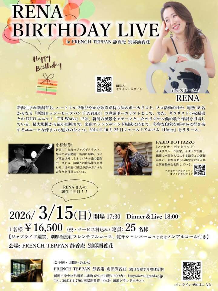 *開催日 2026年3月15日(日) RENAさんの誕生日当日!!