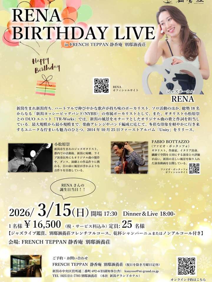 *開催日 2026年3月15日(日) RENAさんの誕生日当日!!