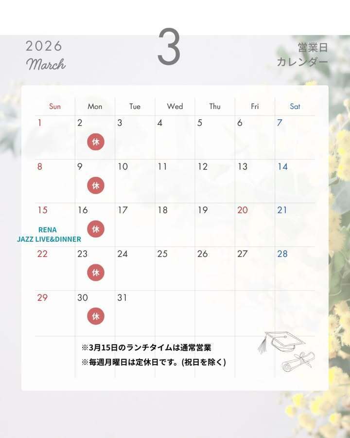 【3月定休日のお知ら