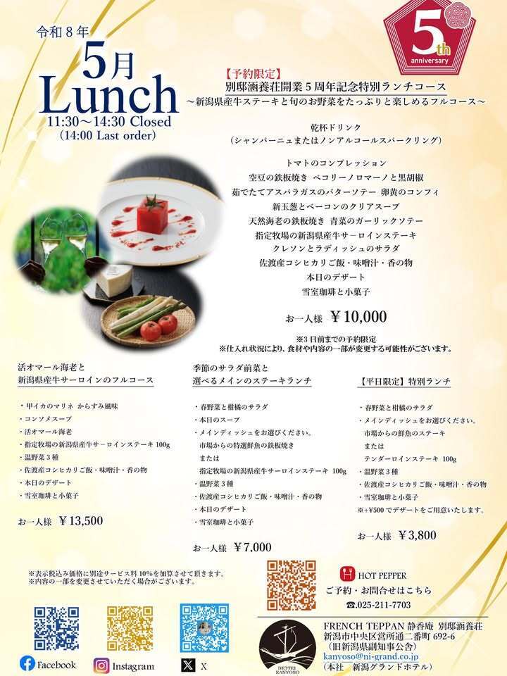 ◉別邸涵養荘開業5周年記念特別ランチコース