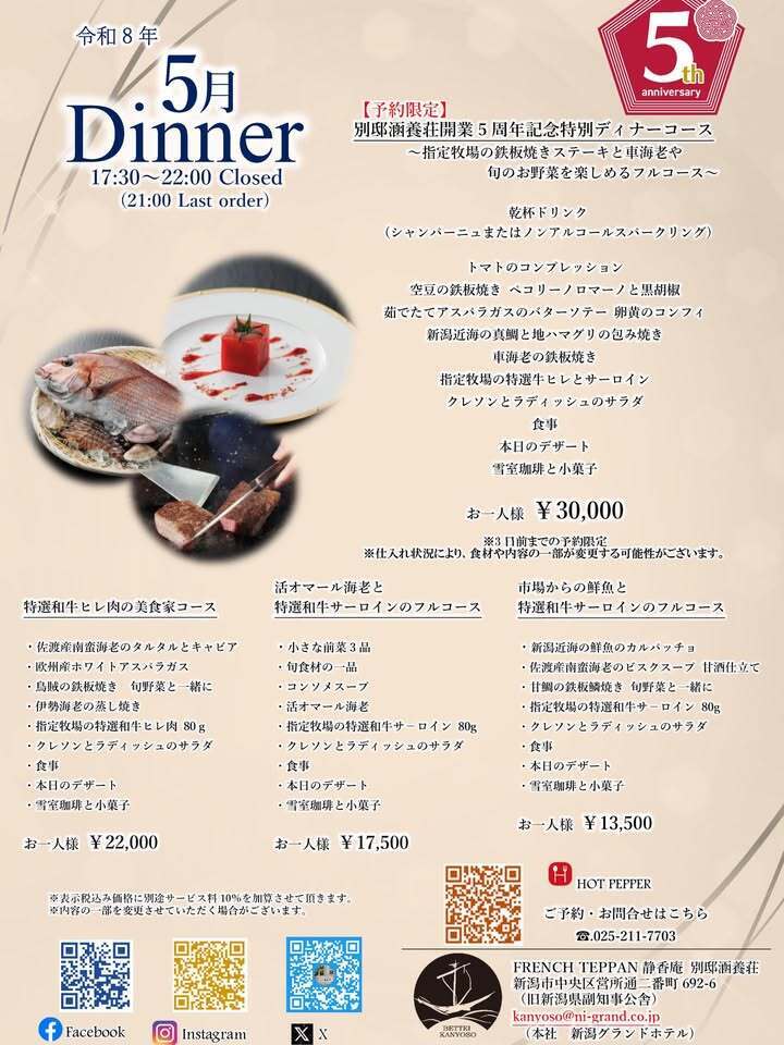 #別邸涵養荘 #5周年 #記念日ディナー #顔合わせ #新潟グランドホテル